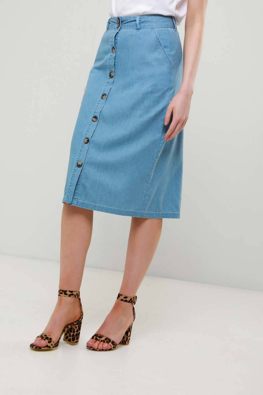 Bali Pale Blue Button Through Denim Chambray Midi SkirtUrban BlissRegular price £12.50Sale price £12.50 Regular priceUnit price per