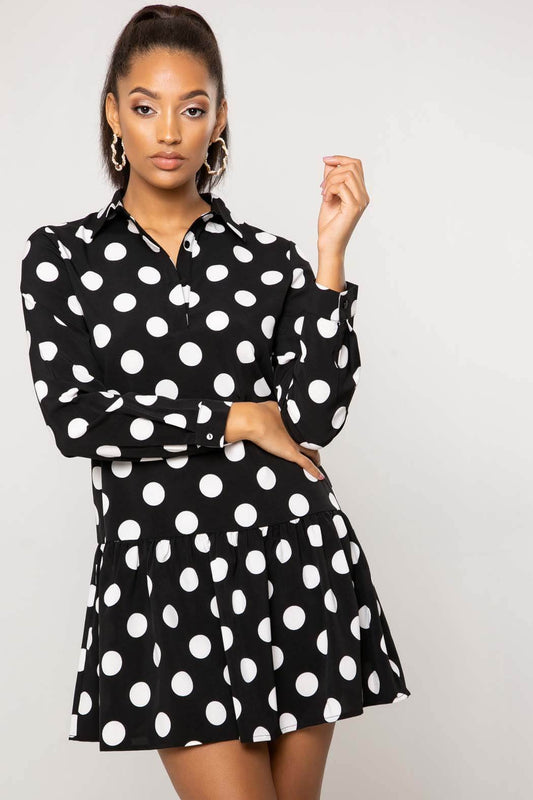 Cleo Black Spot Frill Mini Shirt DressUrban BlissRegular price £22.40Sale price £22.40 Regular priceUnit price per