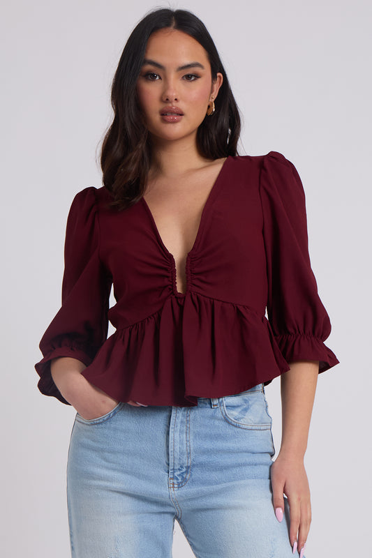 Collette Burgundy U Bar Empire Peplum TopUrban BlissRegular price £15.00Sale price £15.00 Regular priceUnit price per