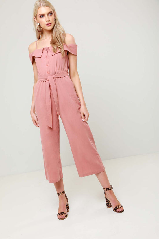 Alexandra Coral Button Detail Wide Leg Jumpsuit