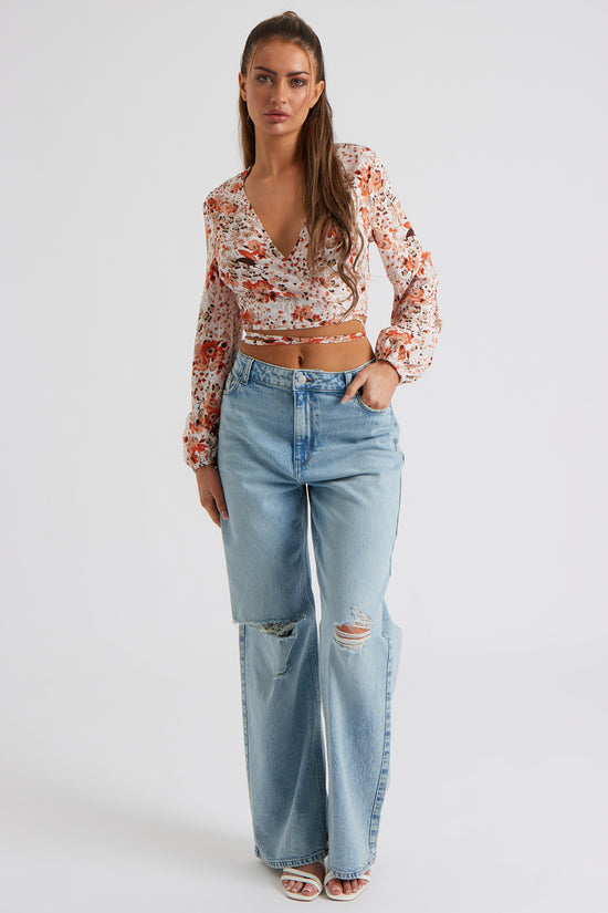 Our Allegra Tie Waist Top, featuring a tie waist and long sleeves, is a must have edition to your 'drone.