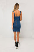 The perfect summer mini dress featuring a flawless fitted silhouette with a denim design and small straps detail.