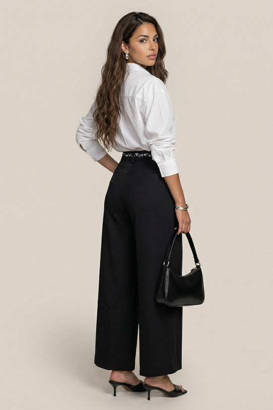 Belted Barrel Leg Trouser Black