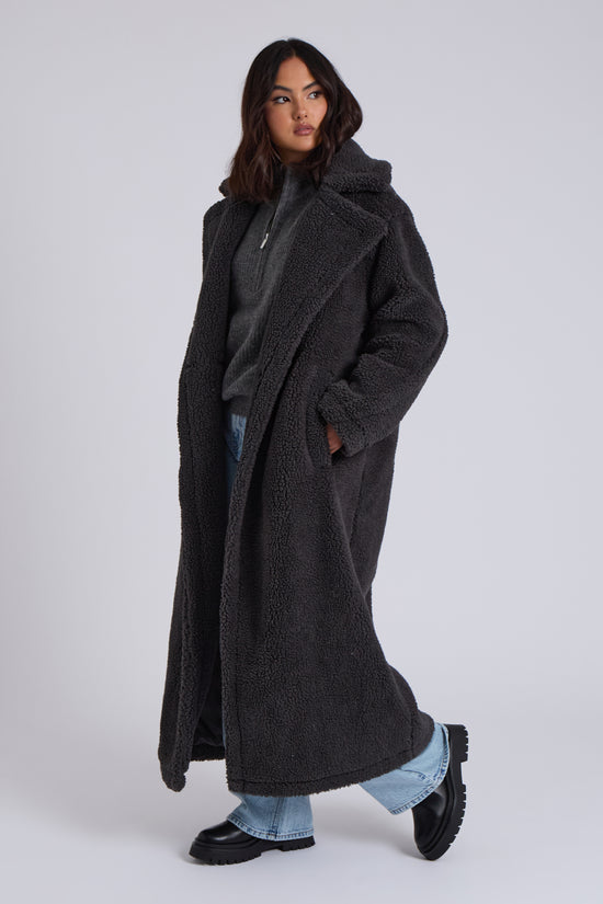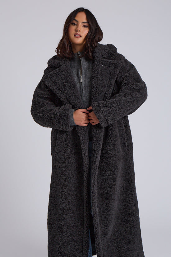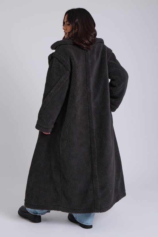 Introducing our Charcoal Borg Longline Jacket—where timeless elegance meets modern style. This jacket features a luxurious borg fabric that provides warmth and comfort, The classic Crombie design, combined with a contemporary twist, makes it a versatile piece perfect for elevating any outfit, from casual daywear to sophisticated evening looks.
