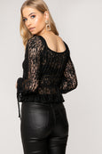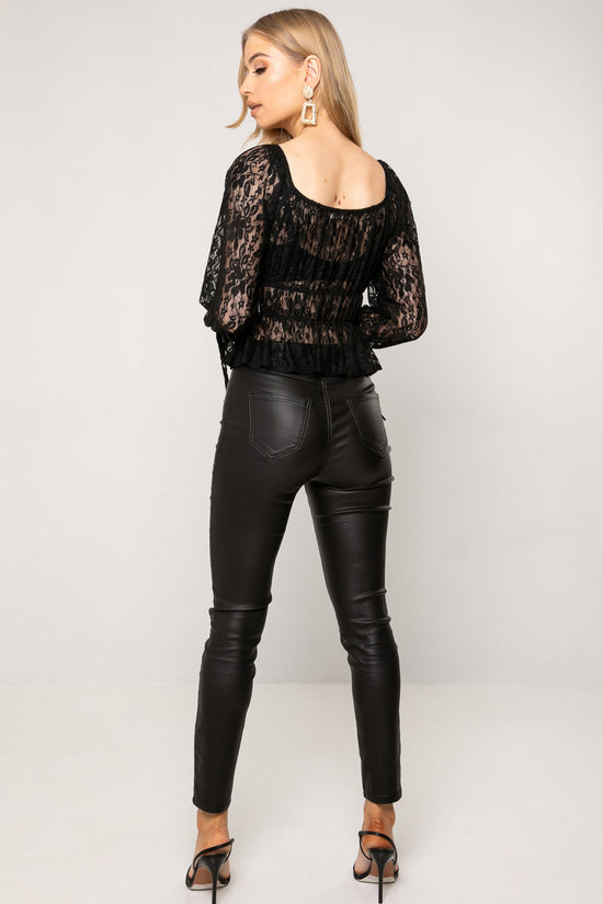 Black Cherry Lace Tie Detail Peplum Bardot Top