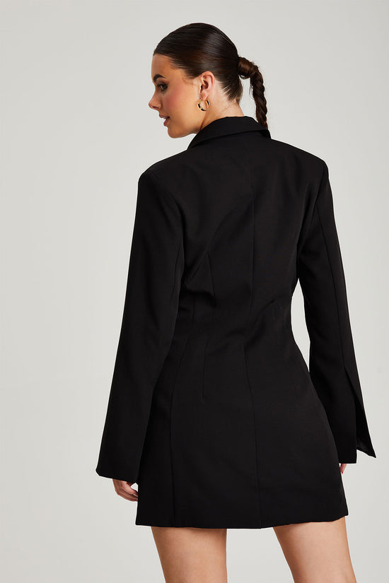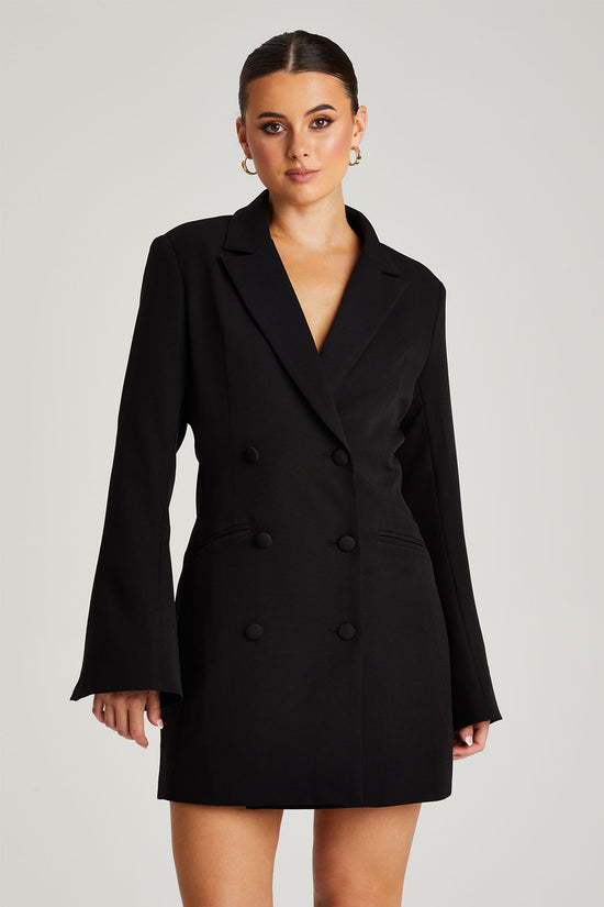 Black Flare Sleeve Fitted Blazer Dress