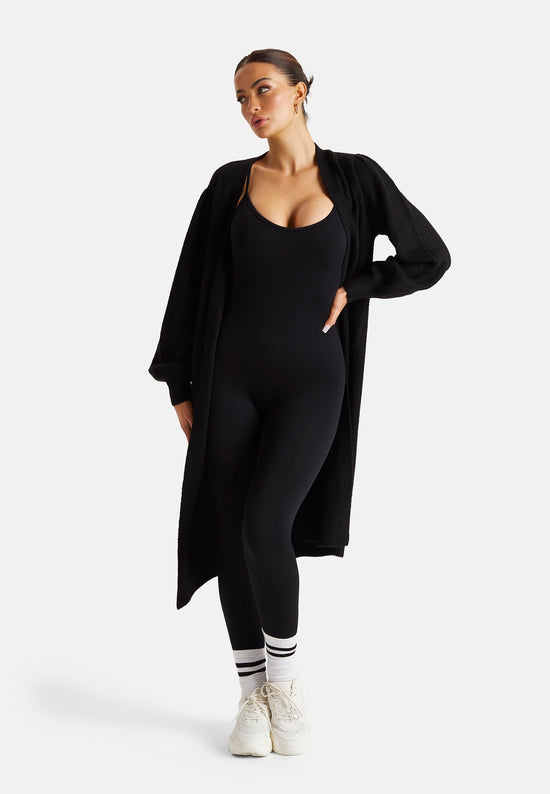 Black Ribbed Midi Cardigan