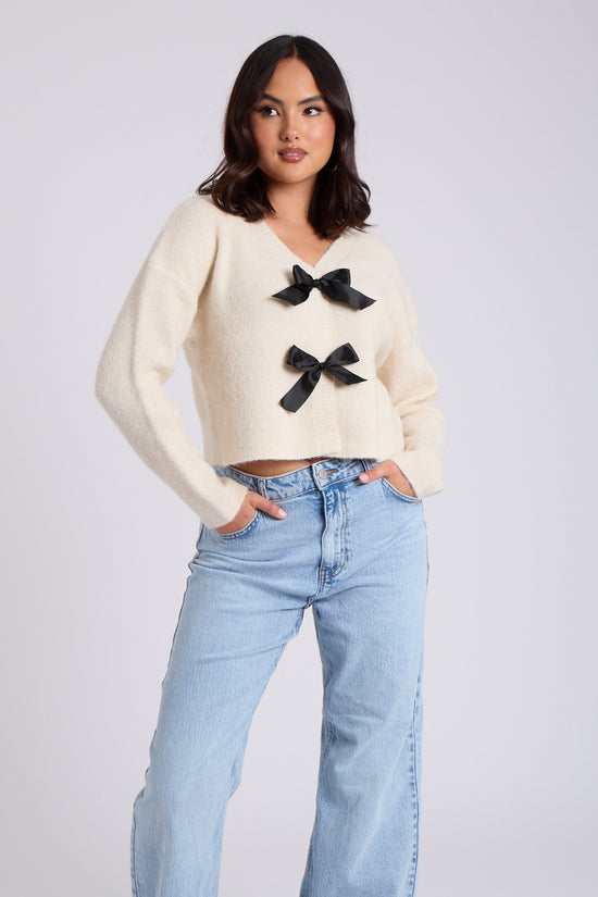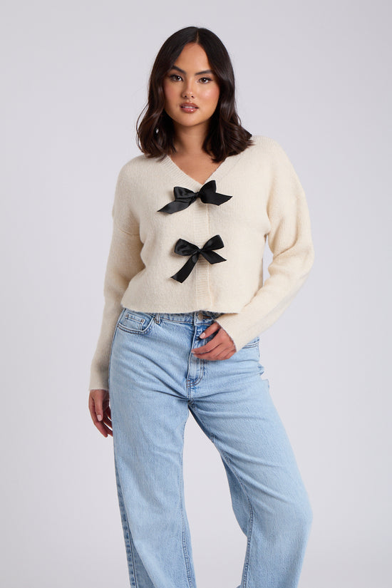 Our new Bow Front Cardigan, a chic and elegant addition to your wardrobe. This beautifully designed cardigan features a delicate bow detail at the front, adding a touch of femininity and sophistication to any outfit. Crafted from soft, high-quality fabric, it offers both comfort and style, making it perfect for layering during any season. Whether dressed up for a special occasion or paired with casual attire, the Bow Front Cardigan is a versatile piece that brings a graceful charm to your everyday look.