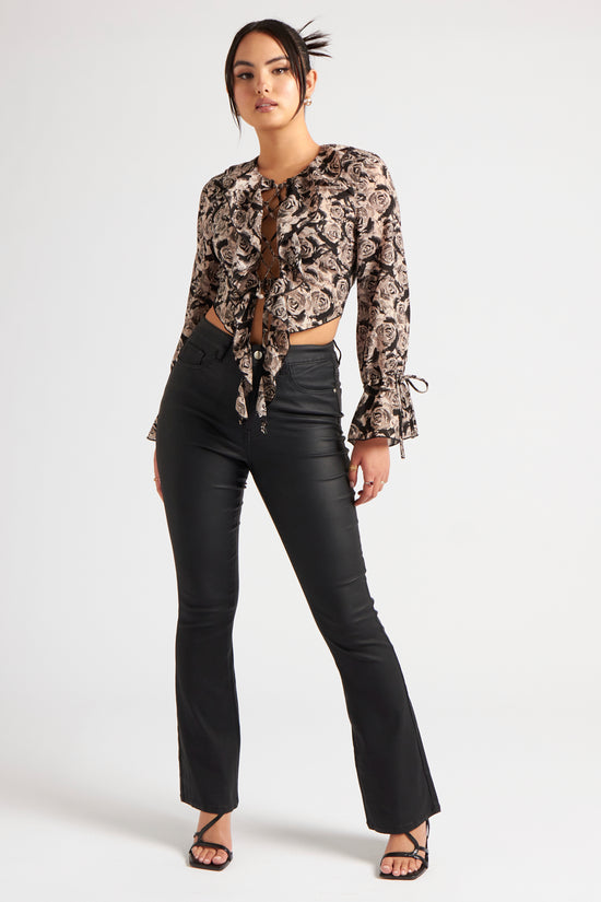 Step out in style with the Carter Coated Flare. Designed with a sleek coated finish and a flattering flared silhouette, these trousers bring a bold, modern edge to your wardrobe. Perfect for day-to-night dressing, pair them with a fitted top or statement blouse for an effortlessly elevated look.