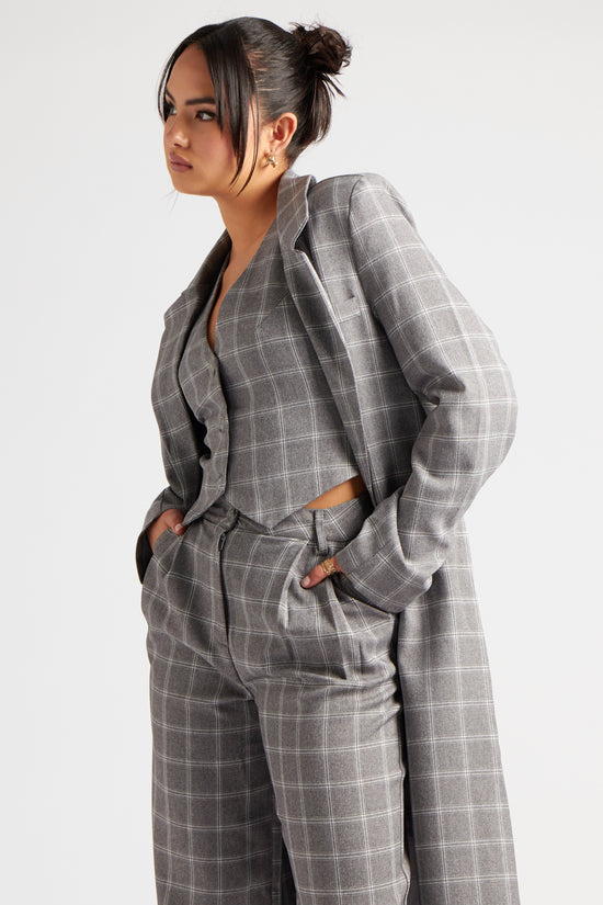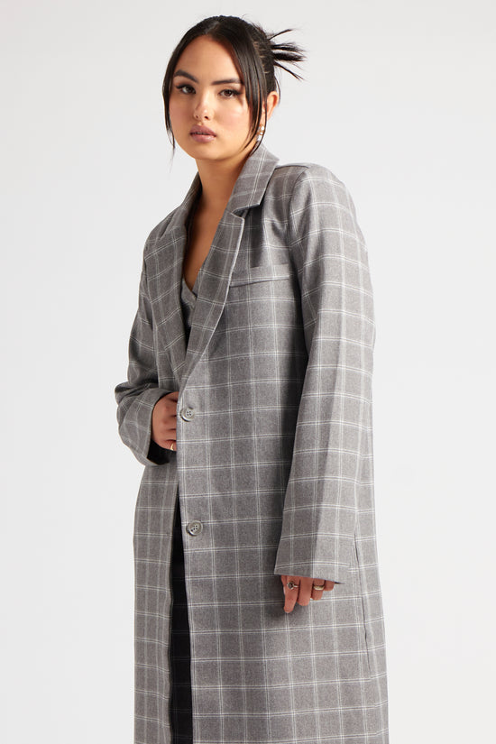 Check Longline Duster Coat