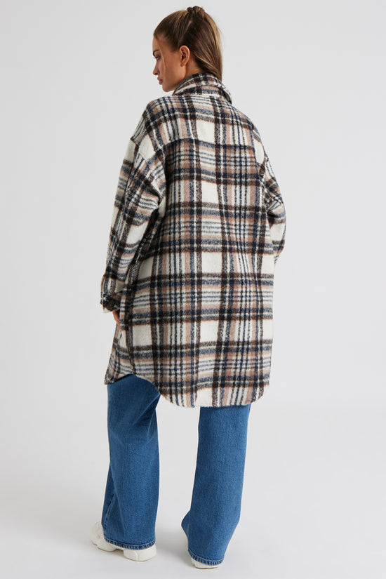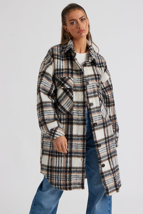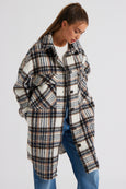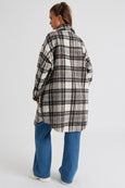 Introducing: The must have of the season, our Chloe Check Longline Shacket! A season staple, our Check Shacket features pockets and buttons.