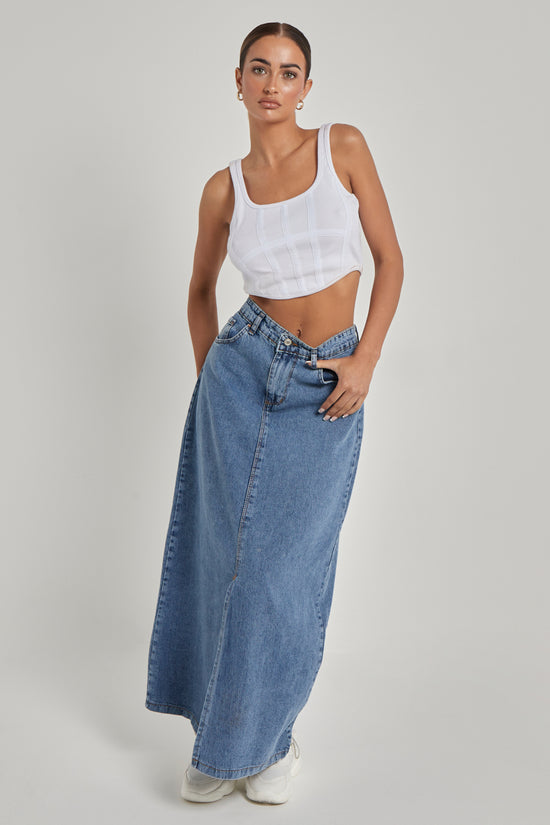 Denim Split Front Maxi Skirt