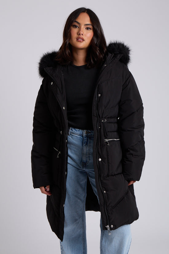 Introducing our Black Faux Fur Padded Parka – where style meets warmth in a perfect fusion. This winter essential is designed to keep you cozy while elevating your fashion game. Crafted with meticulous attention to detail, this parka is more than just a piece of outerwear; it's a statement.
