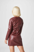 The perfect going out mini dress featuring a flawless fitted silhouette with a red PU design and long fitted sleeves.