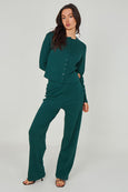 Green Ribbed Wide Leg Trouser
