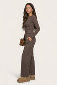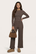 Jersey Striped Wide Leg Trouser Chocolate