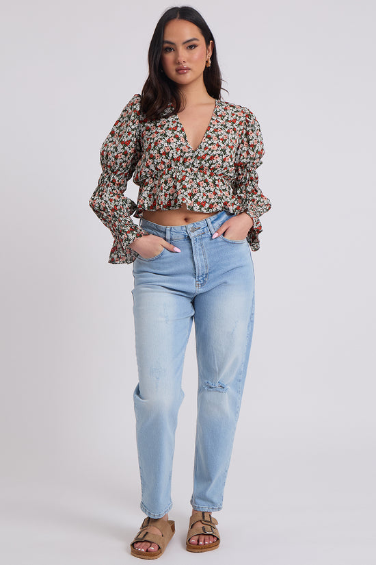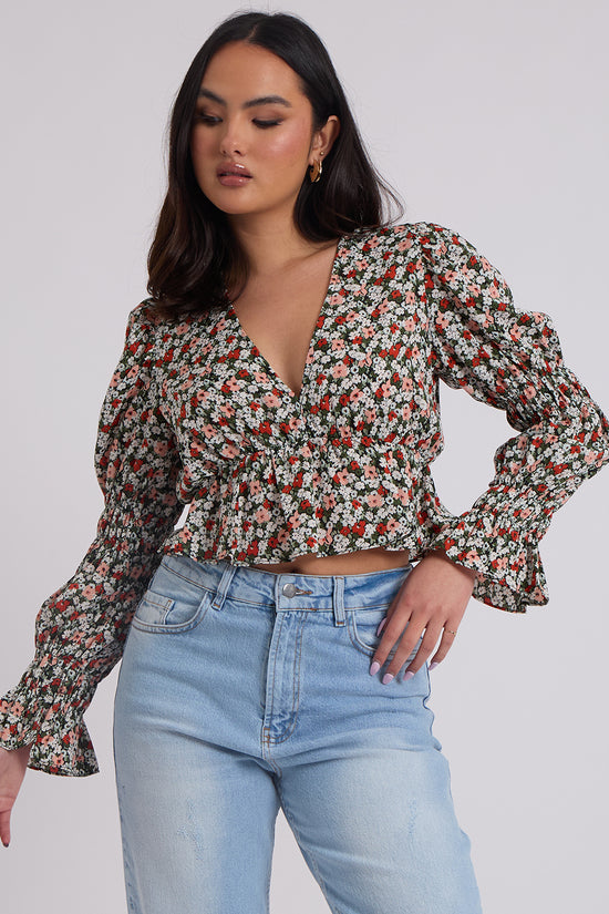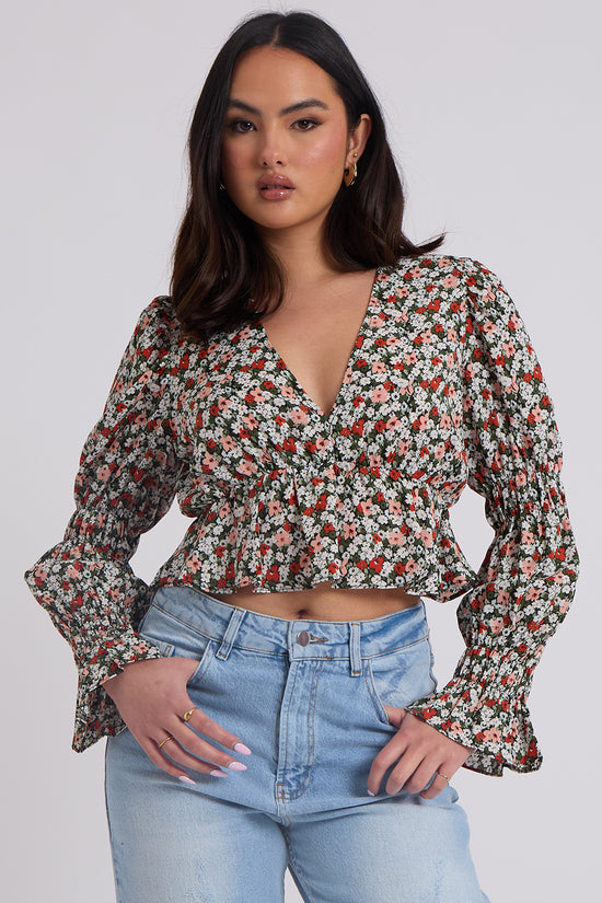 This floral ruched sleeve top is a printed style that we just love. Perfect for adding some some colour to this season wardrobe.
