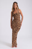The striking leopard print adds a touch of wild elegance, ensuring you stand out on the beach or by the pool. Crafted from lightweight chiffon fabric, this dress offers breathability and a luxurious feel, ideal for hot weather.