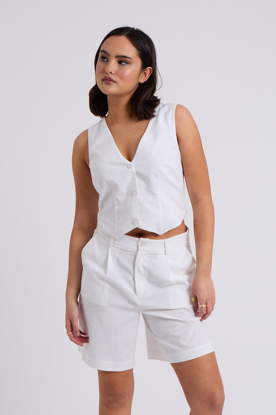 White Linen Blend Waistcoat