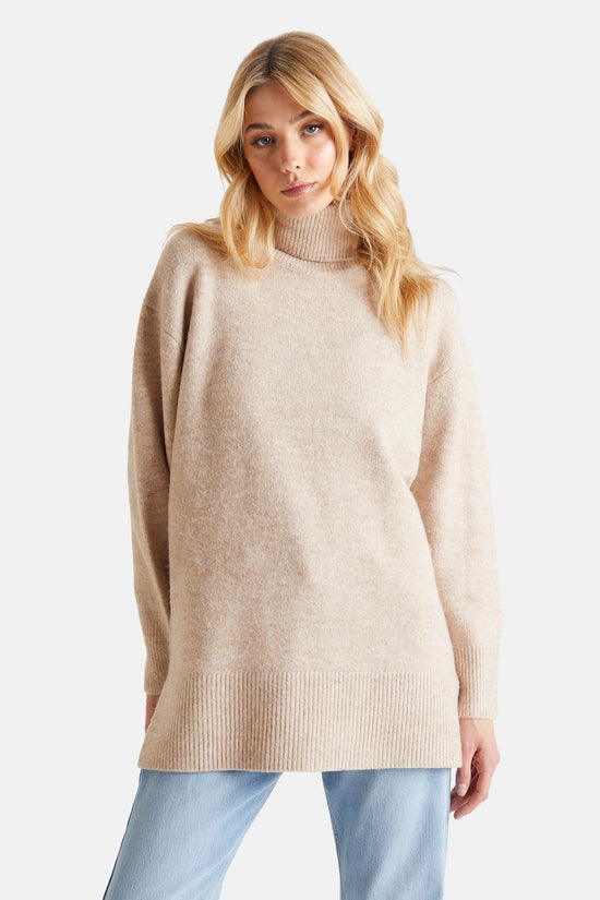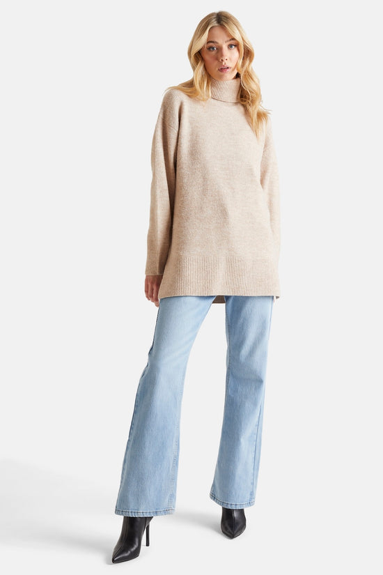 Elevate your knitwear collection with this black deep-hem roll-neck jumper. Crafted from a soft, cosy knit, it features a refined roll neckline and an extended hem that adds a sleek, contemporary silhouette. Perfect for pairing with tailored trousers or your favourite denim.