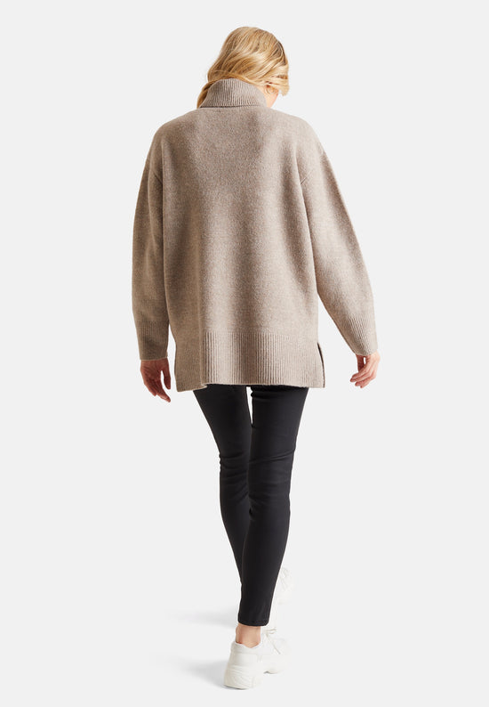 Elevate your knitwear collection with this black deep-hem roll-neck jumper. Crafted from a soft, cosy knit, it features a refined roll neckline and an extended hem that adds a sleek, contemporary silhouette. Perfect for pairing with tailored trousers or your favourite denim.