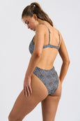 This swimsuit features a mono print finish with a scooped neckline and a scooped back. Featuring thin secure shoulder straps.