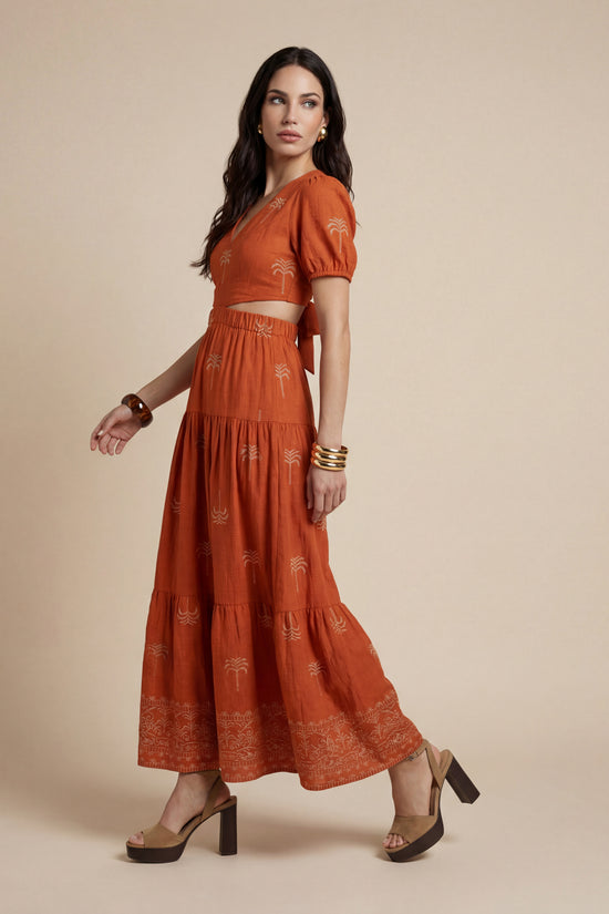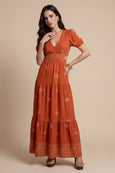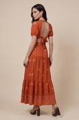 Open Back Tirered Maxi Dress Rust Pattern