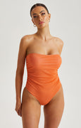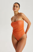 Shop our new in Orange Sparkly Bandeau Swimsuit to stand out this summer.
