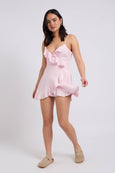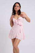 Pink Cami Woven Frill Tea Dress With Lining
