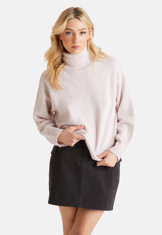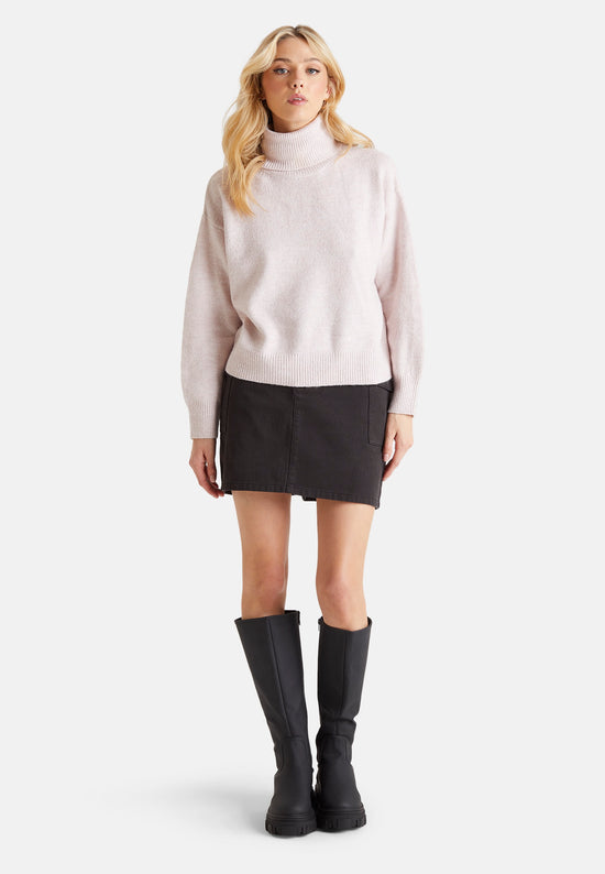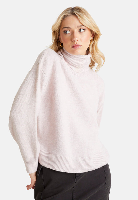 Stay warm in style with this chic roll-neck jumper. Crafted from a soft-touch knit, it features a sleek high neckline and a flattering relaxed silhouette. Perfect for layering or wearing solo, it adds a polished, modern touch to any winter wardrobe.