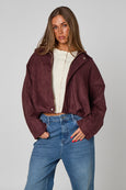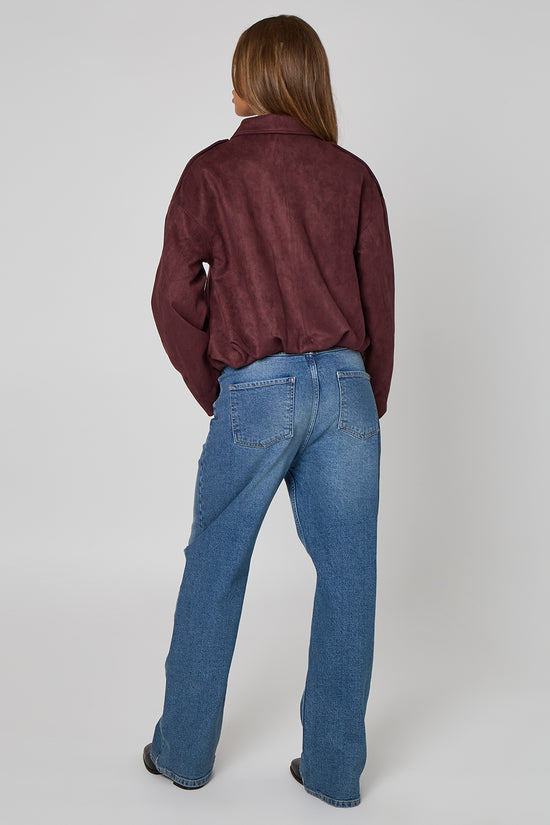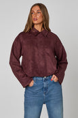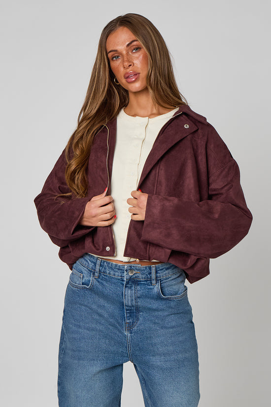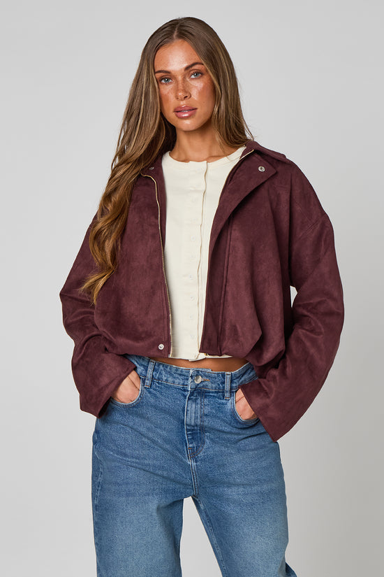 Plum Suede Collared Bubble Hem Jacket