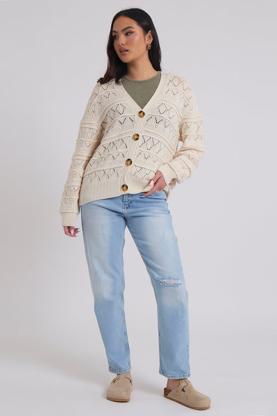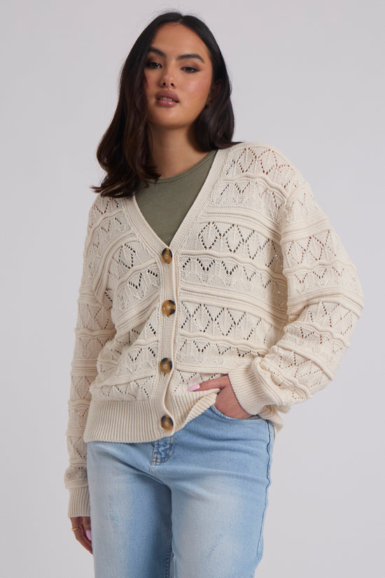 Introducing our Pointelle Cardigan – this cardigan offers a delicate, airy texture that adds a touch of femininity to any outfit. Its lightweight yet cosy feel makes it perfect for layering, whether you're dressing up for an evening out or adding a soft touch to your everyday look.