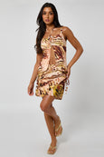 Turn heads with the Draped Mini Skirt with Beading — where sleek design meets eye-catching detail. Featuring soft draping that enhances the silhouette and intricate bead embellishments that add a touch of glam, this skirt is perfect for nights out or statement daytime looks. The flattering high-rise fit and mini length create a bold yet elegant shape. Style it with a simple cami or the matching beaded halterneck top for a coordinated finish.