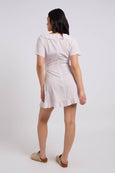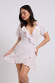 The striking purple hue instantly adds a burst of colour, perfect for sunny days and special occasions. Crafted from a soft, breathable woven fabric, this dress offers both comfort and style. The short sleeves (SS) and frill detailing along the neckline and hemline bring a playful, feminine touch, while the tea-length design creates a flattering, flowy silhouette.