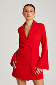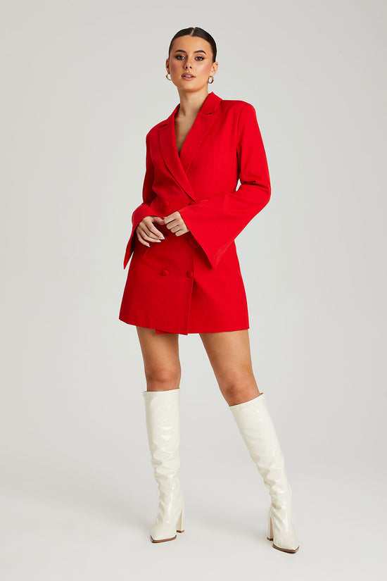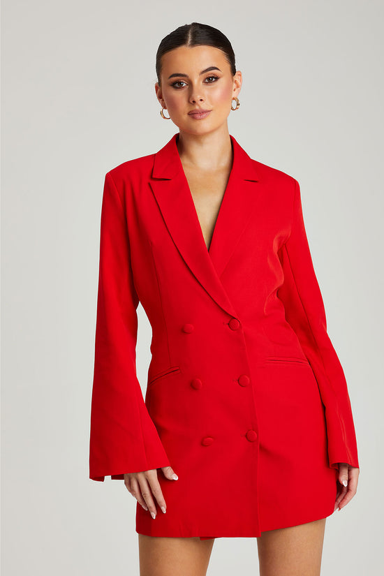 Red Flare Sleeve Fitted Blazer Dress