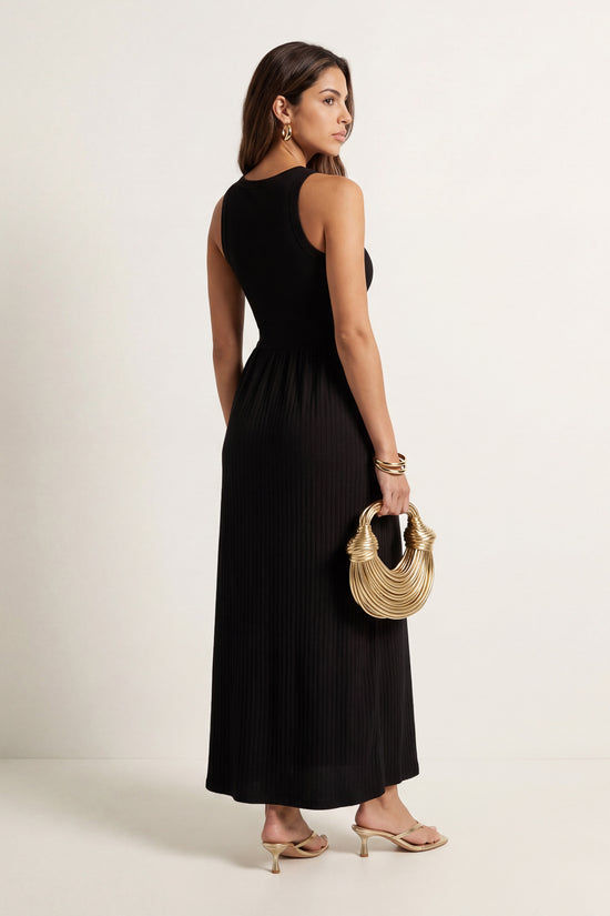 A Black Ribbed Cotton Poplin Dress designed for effortless elegance and everyday comfort. Crafted from breathable cotton poplin with a subtle ribbed texture, it offers a soft feel and a flattering fit. The rich chocolate tone adds a warm, sophisticated touch, making it perfect for casual days, brunch outings, or styled up for a chic look. Lightweight, comfortable, and versatile—an easy wardrobe essential.