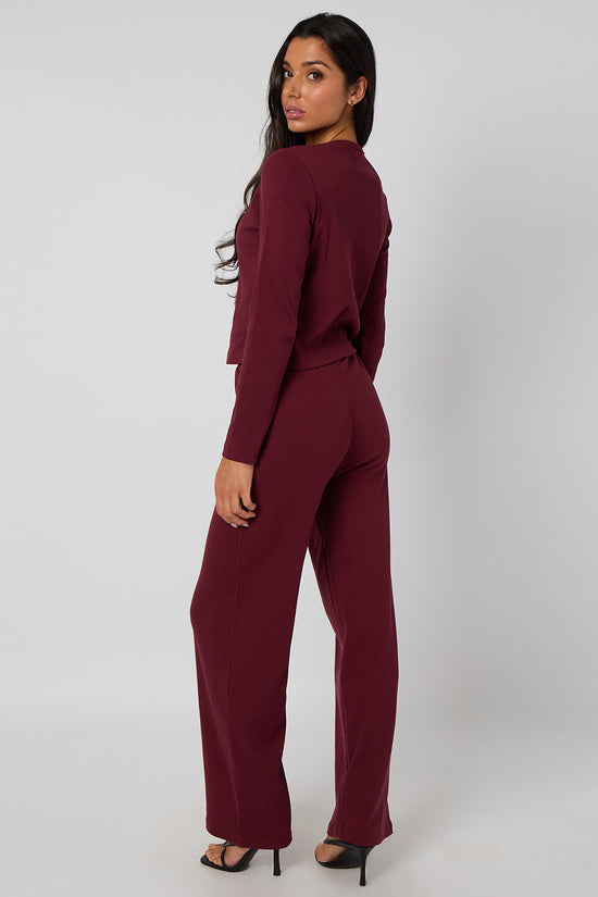 Effortlessly stylish and ultra-comfortable, the Ribbed Wide Leg Trouser is crafted from a soft, stretch ribbed fabric that moves with you. Designed with a relaxed wide-leg silhouette and an elasticated waistband, these trousers offer both ease and a flattering fit.