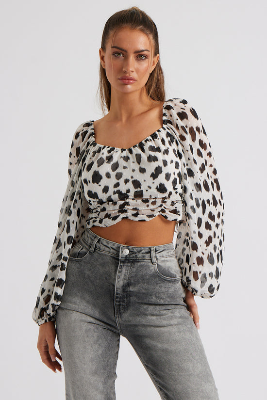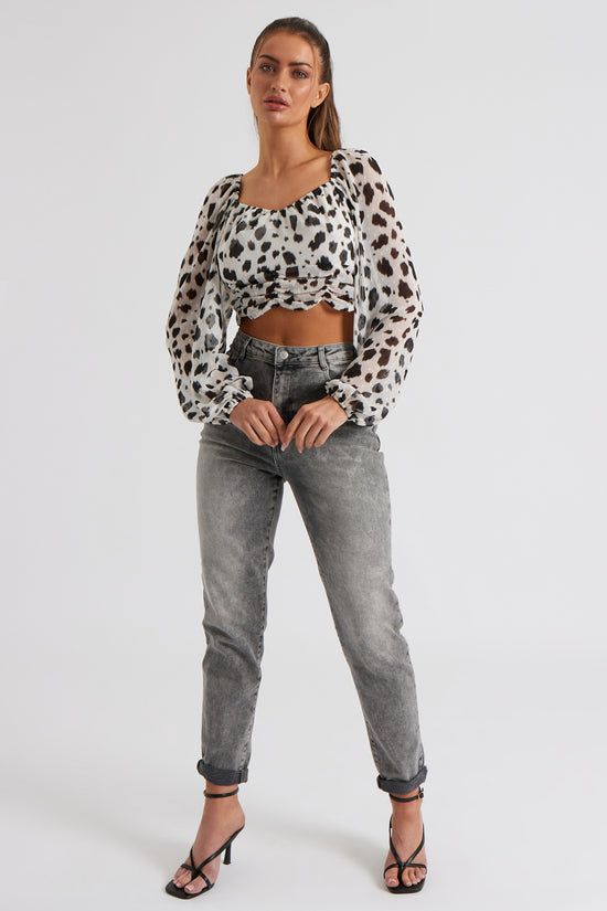 Turn heads in our Selby Animal Print Top! Team with our coated jeans for a more glam look or tone down with our black mom jeans.