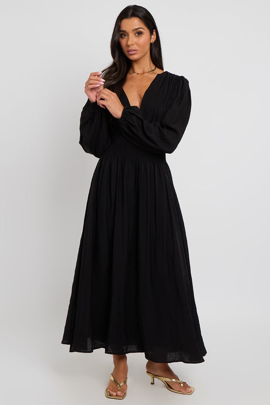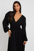 Combine elegance and comfort with the Sleeved Elasticated Waist Maxi Dress. Featuring a flattering elasticated waist that accentuates your silhouette, this dress offers a graceful, flowing skirt for effortless movement. The long sleeves add a touch of sophistication, making it perfect for both daytime wear and evening occasions. Crafted from soft, breathable fabric, this versatile piece can be dressed up with heels or kept casual with boots or flats.