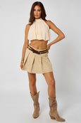 Bring timeless sophistication to your wardrobe with the Suede Belted Pleated Skirt. Crafted from soft faux suede, it offers a luxurious feel and elegant drape.Featuring pleats that create graceful movement and a detachable belt to cinch the waist, this skirt is as flattering as it is versatile. Pair it with a tucked-in blouse and boots for an elevated daytime look or style it with heels and a fitted top for evening polish.