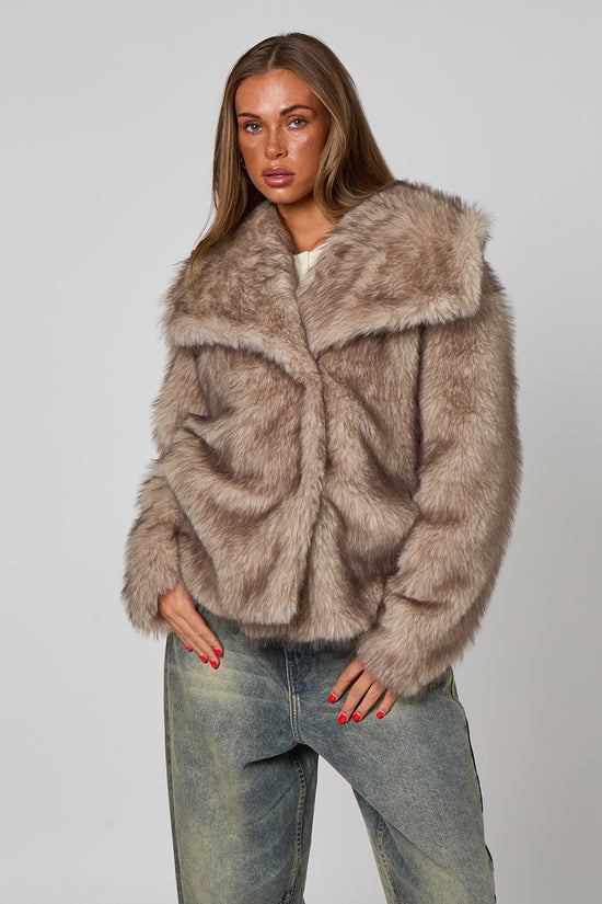 Faux Grey Tipped Fur Jacket