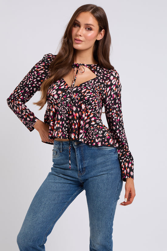 Our Tulip Tie Front Cut Out Blouse is the perfect way to add some print into your new seasons wardrobe! Look super stylish and super fabulous!