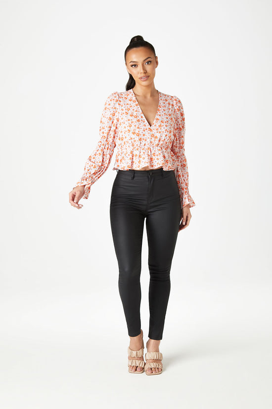 Virgina Ruched Sleeve Peplum Blouse