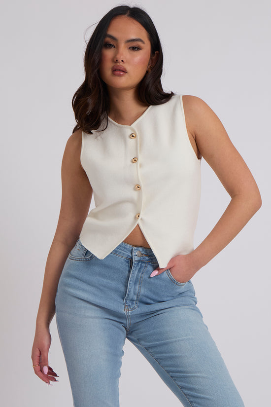 White Button Front Vest
