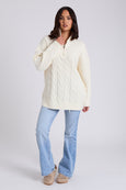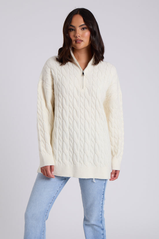 White Cable Zip Neck Jumper