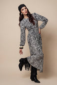 Zebra Long Sleeve Metallic Dress Mono Pattern